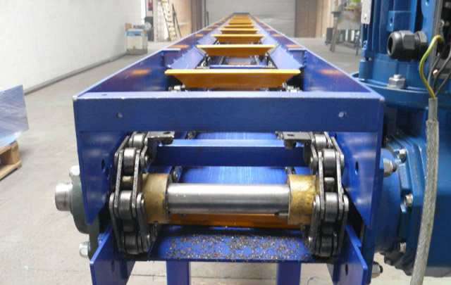 Вал с ведущими звездочками приводится во вращение приводным механизмом. Став представляет собой сварные или штампованные желоба протяженностью до 3 метров. Тяговым устройством служит круглозвенная, пластинчатая или вильчатая цепь.