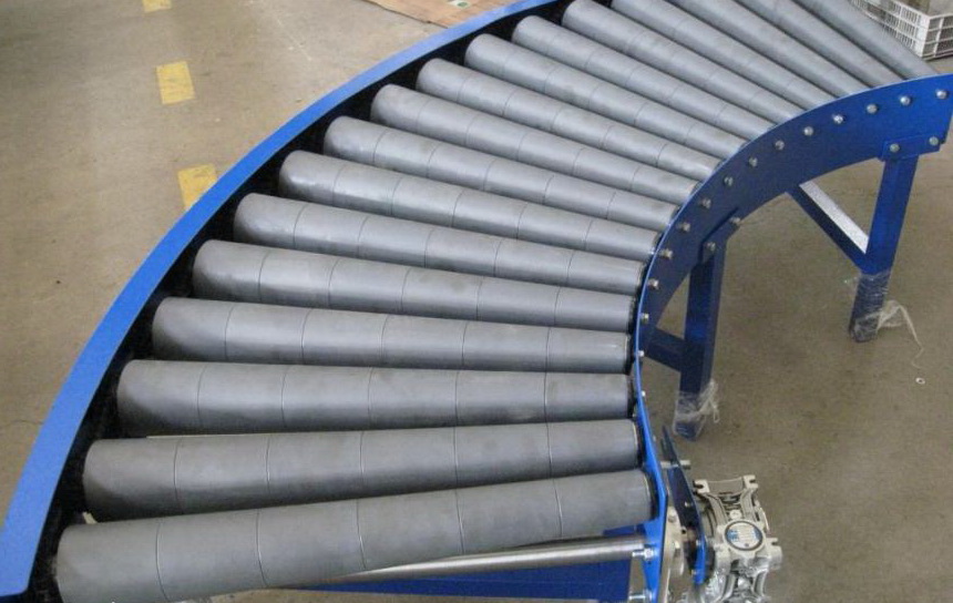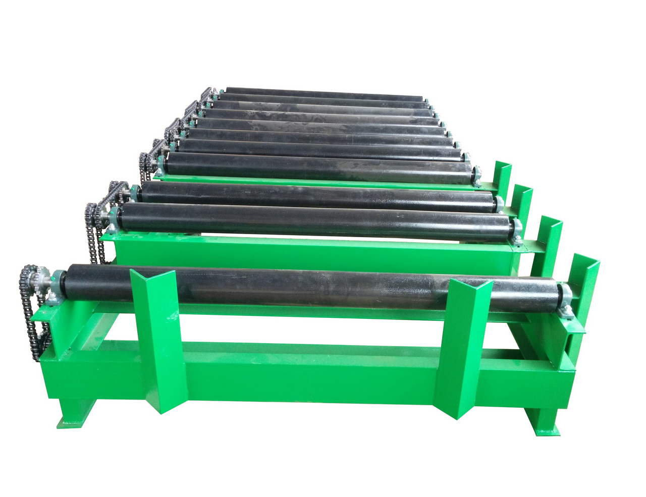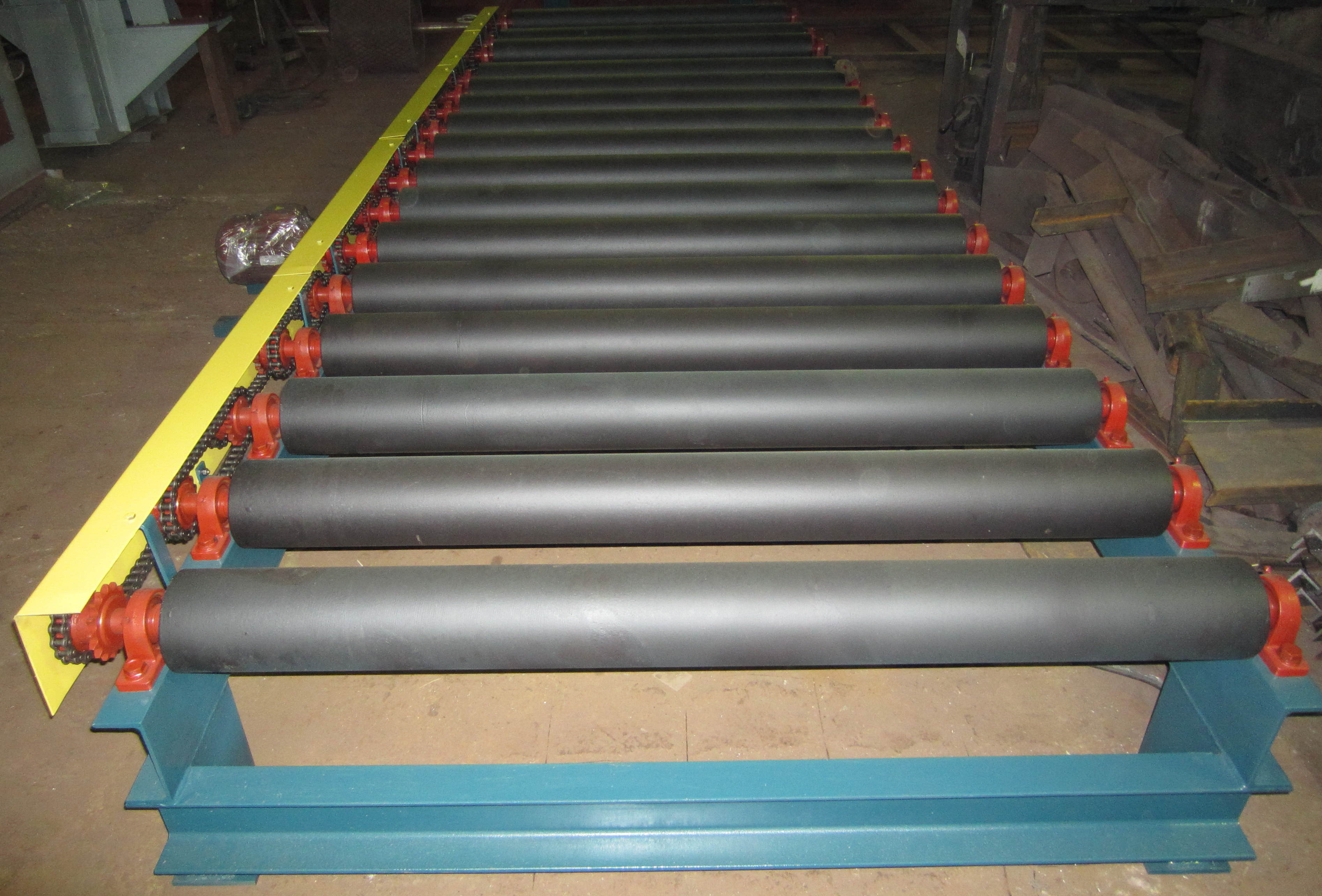 Данные конвейеры могут быть с цилиндрическими и дисковыми роликами, а также шариковые. Как правило, расстояние между роликами (шаг) принимается равным не более 1/3 длины транспортируемого груза. В приводных рольгангах груз перемещается под действием сил сцепления с вращающимися опорными роликами, которые, в свою очередь, получают вращение от группового или индивидуального приводного устройства.